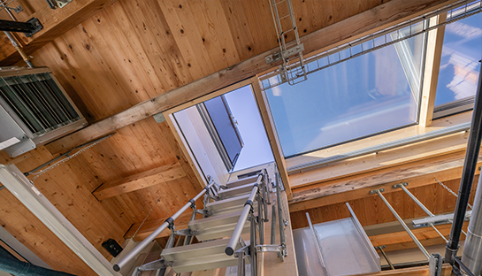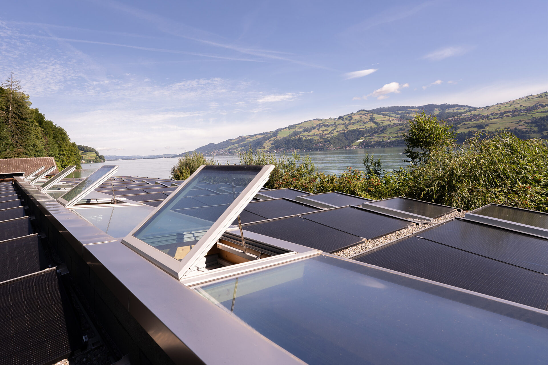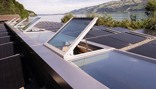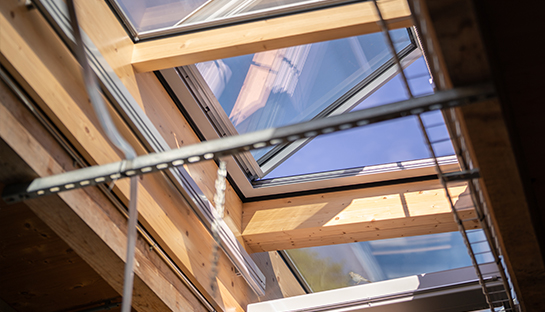 Massgeschneiderte Grösse, in 13 Felder unterteilt, 6 x zum Öffnen, 6 x Festverglast, 1 x Dachausstieg
